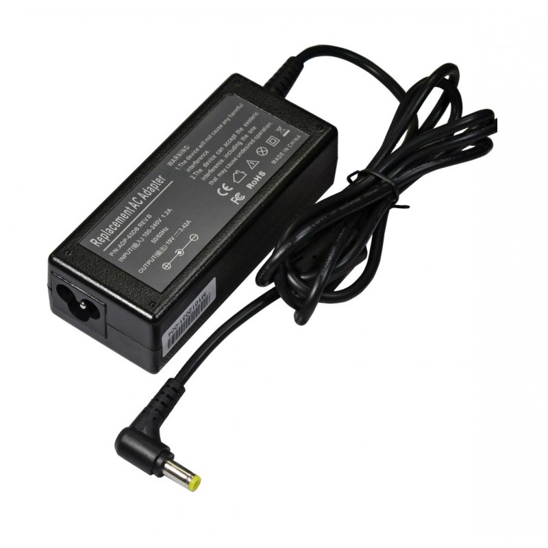 Acer charger with slim tip round connector. Delivers 65W or 90W output for consistent charging. Compatible with Acer Aspire, TravelMate, and more.